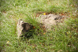 Der dritte Stein ist kaum zu erkennen, so tief steckt er im Boden.